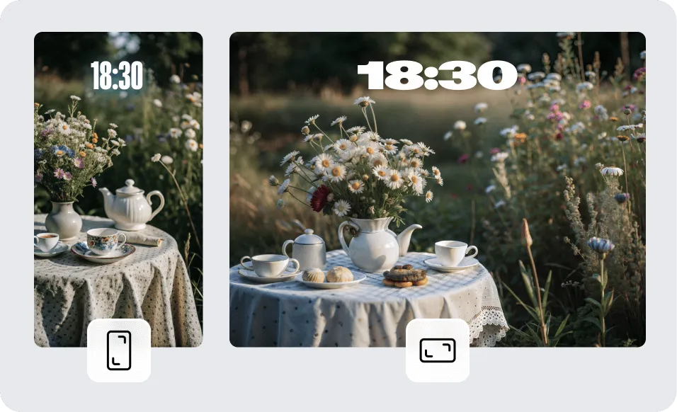Select the aspect ratio that matches your device — 16:9 for desktop, 9:16 for phone, 21:9 for ultrawide. Pick your preferred resolution up to 4K for maximum clarity.
