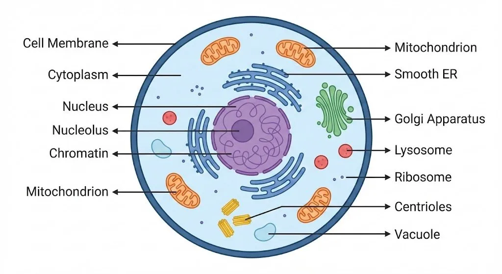 Educational diagram showing labeled parts of a {{subject}}, simple line art + flat colors.